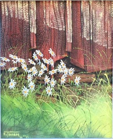 Samuel S.Thorpe was a well known and highly collected local artist who kept an active studio in both Townsend, MA and Kennebunkport, ME for many years. Although Sam studied with various professional artists, as well as having attended the School of the Museum of Fine Arts in Boston, he never lost sight of his own particular style. He believes that time and practice over his lifetime have been his best teachers. Sam Thorpe is best known for his classic New England scenes which include maple sugar houses, New England villages and town commons, Maine water fronts and fishing shacks, ice cutting scenes, old stream sawmills, and seasonal New England landscapes and activities. He painted New England. His favorite subjects were action scenes of ice harvesting, maple sugaring, saw mills and logging -- called "Easterns" -- that preserved on canvas a way of life that has all but disappeared. He delivers his art to the viewer through a method known as atmospheric painting. He creates a feeling of light and air which when exposed to natural daylight responds dramatically, allowing shadows to glow luminously and light struck areas to vibrate with color. He uses the elements of light, shadow, color and composition to create a certain mood or feeling to his paintings. As a painter who worked primarily in oils, the texture and vibrant colors of this medium easily led to compositions of this type. Sam has exhibited in countless group, one, and two man shows throughout the entire northeast. Many individuals, professionals, and corporations have purchased substantial collections of his work including President George H. Bush who purchased a Maine landscape that still hangs in his Kennebunkport home. Art collectors continue to seek out his work to this day. Each painting that comes off Sam’s easel is totally singular in its composition. In order to trace his work Sam assigns a registration number to each painting. This number, along with all pertinent information necessary to identify the painting is kept on permanent file. Sam Thorpe has held membership in the Copley Society of Boston, the Rutland Area Art Association, Chaffee Art Center, Southern Vermont Art Association, the Salmagundi Club, The Artists Guild of Kennebunk’s, the New Haven Paint and Palette Club, and is listed in the Who’s Who in America and Who’s Who in the World.